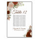 Rust Orange Roses Elegant Wedding Seating Chart Table Number