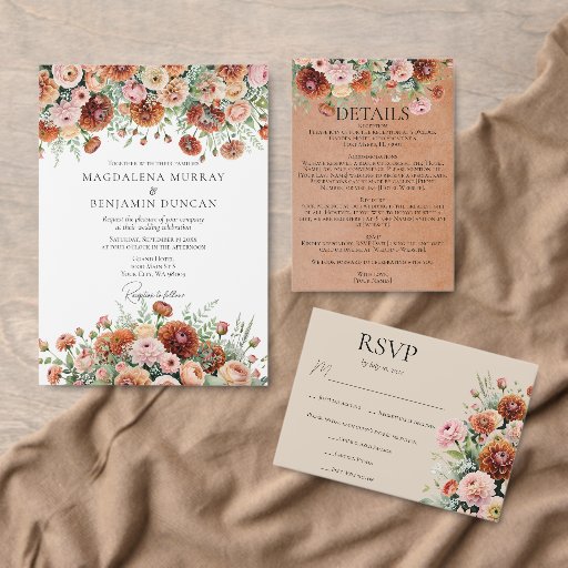 Rust Orange Sage Green Cream Flowers Fall Wedding Invitation