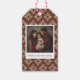 A custom photo and text block printed geometric gift tag, in an elegant terracotta rust red. Perfect for Christmas presents. Refined Western style.