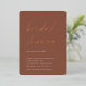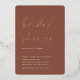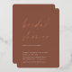 Invite guests to celebrate the bride to be with these modern and minimal bridal shower invitations with stunning rose gold foil accents. Simple design features "bridal shower" in casual handwritten script on a warm earth tone rust background, with your event details aligned at the lower left in modern off white lettering.