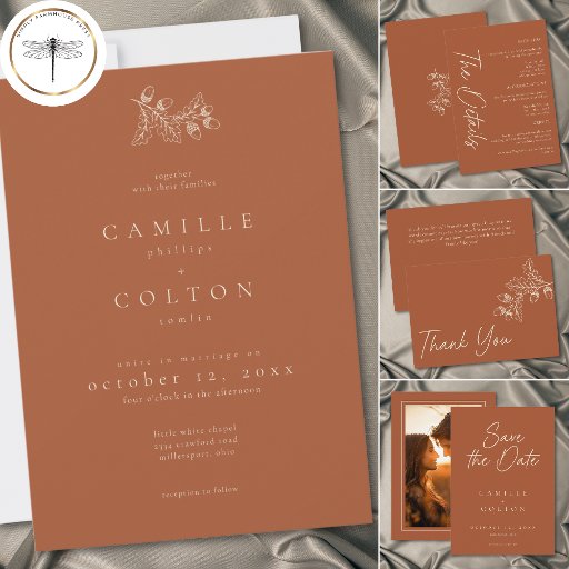 Rust Terracotta Minimalist Leaf Acorn Fall WeddingDesigned by Kathe Santillo