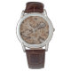 The watch looks really great! Very sharp and well done. The leather band is really nice, though for a man's watch I think it should be longer. Unfortunately, it isn't big enough for my husband's wrist but I will get a replacement because he is very excited to wear it!