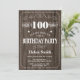 Rustic 100th Birthday Invitation. White Typography. Rustic Wood Background. Adult Birthday. Male Men or Women Birthday. Kids Boy or Girl Lady Teen Teenage Bday Invite. 13th 15th 16th 18th 20th 21st 30th 40th 50th 60th 70th 80th 90th 100th. Any Age. For further customisation, please click the "Customise it" button and use our design tool to modify this template.