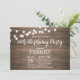 Rustic 18th Birthday Invitation with String Lights Wood Background. 13th 15th 16th 18th 21st 30th 40th 50th 60th 70th 80th 90th 100th, Any age. For further customisation, please click the "Customise it" button and use our design tool to modify this template.