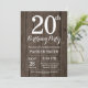 Rustic 20th Birthday Invitation