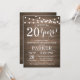 Rustic 20th Birthday Invitation Wood Background with String Lights. 13th 15th 16th 18th 20th 21st 30th 40th 50th 60th 70th 80th 90th 100th, Any age. Adult Birthday. Woman or Man Male Birthday Party. For further customisation, please click the "Customise it" button and use our design tool to modify this template.