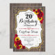 Rustic 20th Birthday - Roses Sunflowers Wood Invitation