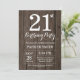 Rustic 21st Birthday Invitation. Rustic Wood Background. Vintage Retro Birthday. Adult Birthday. Men or Women Bday Invite. 13th 15th 16th 18th 20th 21st 30th 40th 50th 60th 70th 80th 90th 100th, Any age. For further customisation, please click the "Customise it" button and use our design tool to modify this template.