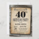 Rustic 40th Birthday Invitation Vintage Wood