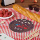 This 4th of July party paper plate features a rustic wood background accented with strings of lights across the top. This is a perfect accent to you backyard party this Fourth of July.