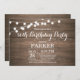 Rustic 50th Birthday Invitation with String Lights Wood Background. 13th 15th 16th 18th 21st 30th 40th 50th 60th 70th 80th 90th 100th, Any age. For further customisation, please click the "Customise it" button and use our design tool to modify this template.