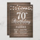 Rustic 70th Birthday Invitation with String Lights Wood Background. 16th 18th 21st 30th 40th 50th 60th 70th 80th 90th 100th, Any age. For further customisation, please click the "Customise it" button and use our design tool to modify this template.