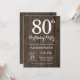Rustic 80th Birthday Invitation. Rustic Wood Background. Vintage Retro Birthday. Adult Birthday. Men or Women Bday Invite. 13th 15th 16th 18th 20th 21st 30th 40th 50th 60th 70th 80th 90th 100th, Any age. For further customisation, please click the "Customise it" button and use our design tool to modify this template.