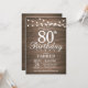 Rustic 80th Birthday Invitation with String Lights Wood Background. 16th 18th 21st 30th 40th 50th 60th 70th 80th 90th 100th, Any age. For further customisation, please click the "Customise it" button and use our design tool to modify this template.