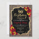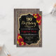 Rustic 90th Birthday Invitation. Elegant design with faux glitter gold and dark brown wood pattern. Features sunflowers and roses. Perfect for an elegant country style or garden birthday party.