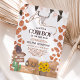 Rustic a little cowboy western cow baby shower invitation featuring a rustic desert theme, with boho cow skull, cowboy lasso, brown country bunter flags, cowboy hat, rustic wooden wheel, hay stack, sunflowers bouquet, green desert cactus, wooden sign with saloon and horses ( the text can be edited) and wild west brown cow pattern. Saddle up and join us for a baby shower! A little cowboy is on the way!