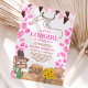 Rustic a little cowgirl western cow baby shower invitation featuring a rustic desert theme, with boho cow skull, cowboy lasso, brown and pink country bunter flags, cowboy hat, rustic wooden wheel, hay stack, sunflowers bouquet, green desert cactus, wooden sign with saloon and horses ( the text can be edited) and wild west pink cow pattern. Saddle up and join us for a baby shower! A little cowboy is on the way!