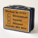 Lunch Box Lunchbox in a classic old school retro black finish with a fun breakfast, lunch or dinner phrase that can be checked off with magnet or dry erase markers and with a background printed with Rustic Abstract Modern Contemporary Geometric Art graphic design Illustration by TheFabricSeal print on demand shop at Zazzle.com #ZazzleMade ©️Original. https://www.zazzle.com/store/thefabricseal