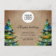Rustic Add Logo Custom Text Christmas Tree Holiday Business Postcard. Rustic beige background and watercolor colourful Christmas tree. Insert your logo into the template and customise the text, company name, address and contact information. Holiday card for your clients and business partners.