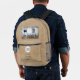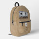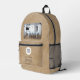 Rustic Add your Logo Custom Text Red Company Photo Printed Backpack. Rustic beige background. Add your logo, photo and customise the text, company name, address and contact information. Business promotion or giveaway for your clients and business partners.