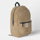Rustic Add your Logo Custom Text Red Company Printed Backpack. Rustic beige background. Add your logo, photo and customise the text, company name, address and contact information. Business promotion or giveaway for your clients and business partners.