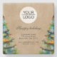 Rustic Add your Logo Custom Text Christmas Tree Promotion Stone Coaster. Watercolor colourful Christmas trees on a rustic background. Insert your logo into the template and customise the text, company name, address and contact information. Business promotion or giveaway for your clients and business partners for holidays.