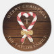 Rustic Add Name Monogram Merry Christmas Classic Round Sticker