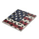 Distressed American flag with bold leopard print overlay on rustic wood texture. Ideal for patriotic women, country style lovers, and those who love bold USA-inspired ceramic tile.