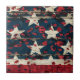Distressed American flag with bold leopard print overlay on rustic wood texture. Ideal for patriotic women, country style lovers, and those who love bold USA-inspired ceramic tile.