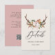 Share all the important information for your special day with this rustic boho antler wedding details card. Featuring elegant woodland antlers adorned with blush florals and greenery, this insert perfectly complements fall, barn, ranch and countryside weddings.
