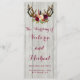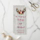 Pretty Boho Antler floral wedding Program, watercolor flowers and feathers on a rustic barn wood background.
