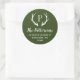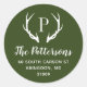 Custom round return address stickers personalised with your family monogram and address. This modern rustic design features your monogram initial with deer antlers in hunter green and white colours. Use the design tools to change the background colour and fonts to further customise your own unique design. Perfect for addressing holiday cards, wedding stationery and more.