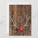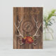 Romantic rustic wedding invite with personalised Initial burnt wood effect. Fun antler design but sophisticated.