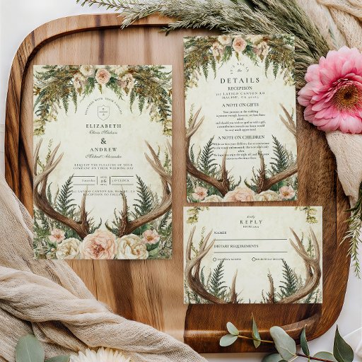 Rustic Antler Woodland Floral Wedding Enclosure Card