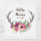 With enchanting rustic boho style, this wedding wine label design features deer antlers beautifully embellished with watercolor florals in rich purple, magenta and pink hues. Replace the sample text with your information. This label makes a lovely choice for wedding favours, special celebrations, bridal party gifts and more.