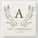 Rustic stone coasters featuring your monogram framed by hand-drawn antlers with your last name and the year displayed below. The monogrammed coasters make the perfect engagement, wedding, or Christmas gift!