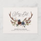 Rustic antlers script navy burgundy floral wedding announcement postcard