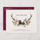 Rustic antlers script navy burgundy floral wedding announcement postcard
