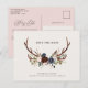 Rustic antlers script navy burgundy floral wedding announcement postcard