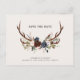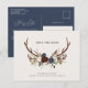 Rustic antlers script navy burgundy floral wedding announcement postcard