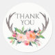 Rustic Antlers with Pink Bouquet Thank You Classic Round Sticker