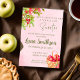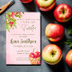 Bring something sweet to your celebration with this charming apple-themed shower invitation, featuring a vintage-style basket of fresh red apples and an apple tree filled with fruit. Soft red watercolor accents and elegant feminine green script create a warm blend of rustic charm and modern sophistication.