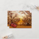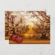 An elegant RSVP card featuring an image of an apple orchard and apples in warm ochre and red colours.