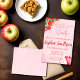 Celebrate something sweet with this charming rustic apple-inspired shower invitation, featuring a hand-painted apple tree filled with bright red apples, paired with a single apple and slice for a warm orchard aesthetic. A soft red watercolor wash enhances the design, complemented by a mix of traditional serif and feminine cursive fonts for a modern boho twist.