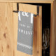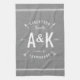Modern farmhouse kitchen towel personalised with your family name, monogram initials, city and established date in a trendy logo crest. Please note the subtle burlap background texture is part of the printed design and the product is not made of real burlap fabric. Click the Customise It button to customise fonts and colours, add your own text and photos to create a unique one of a kind design!