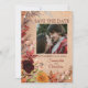 Rustic Autumn Bloom Burgundy Blush Photo Save the Date is perfect for your autumn wedding and features your details surrounded by a burst of hand painted watercolor flowers in rich shades of burgundy, gold, amber, blush and violet. Burgundy peony, asters, mums and freesia accented by fall foliage overlaid on a background of gently shaded kraft paper look. Showcase your favourite photo and easily edit it in.The back of the card features the bride and groom's special message to their friends and family. accented by autumn foliage. All of the text on front and back in modern serif and script fonts and photo is editable. Just select the personalise option and you will find all of the elements neatly organised. You will find this beautiful photo save the date along with other variations and wedding stationary, and items for your wedding and reception celebration in our ROMANTIC RUSTIC AUTUMN BLOOM WEDDING COLLECTION. Designed by wedding specialist Nancy Lambert. Message us for help.