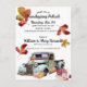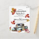 Watercolor autumn leaves, rusty orange-red and golden green, drift across this invitation. Anchoring the bottom are a rustic, rusty vintage blue truck and arrangements of pumpkins, flowers and foliage. The details for your "Friendsgiving Potluck" gathering are in two contrasting fonts, a script font and a small, sans serif, both in black. It's simple to swap the details of your event for our placeholder information. On this versitile invitation, you can make the hours for brunch or dinner instead of lunch. Just hit "Personalise" and get started. Your return address and personal note are on the back of the postcard. Again, the spacing is in place, you have only to swap your personal info for that of the placeholders.