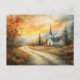 A peaceful watercolor painting of a rustic church surrounded by autumn foliage, capturing the warmth and serenity of a countryside fall scene.