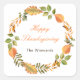 Pretty thanksgiving party sticker with autumn fall leaves in orange, yellow and green. Perfect for an autumn fall thanksgiving party. The words can be changed to suit your own details or requirements.