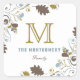 'Happy Thanksgiving' Typography, Brown Rustic Autumn / Fall Leaves And Aqua Blue Decorative Swirls With Modern Classic Family Monogram Thanksgiving Design - Party Favour Sticker / Envelope Seal.